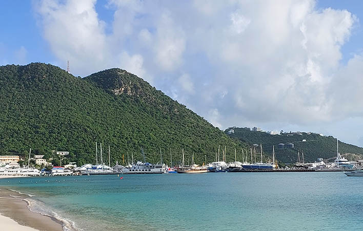 Bay and the marina. Located on the Dutch side of the island of Sint