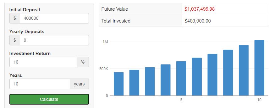 exercise I will set you at a 10% annual return, the same as the S&P 500