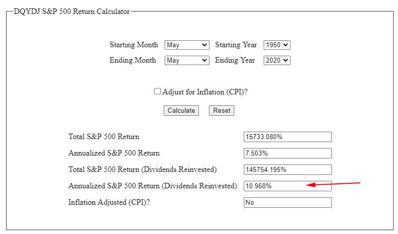the S&P 500 Index with dividends reinvested has returned over 10% annually.